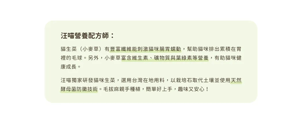 汪喵獨家研發貓咪/狗狗生菜,選擇台灣在地原料,