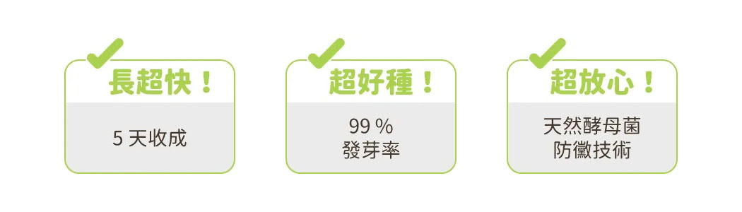 🔸 五天快速收成 - 最快五天即可收成, 健康不用等