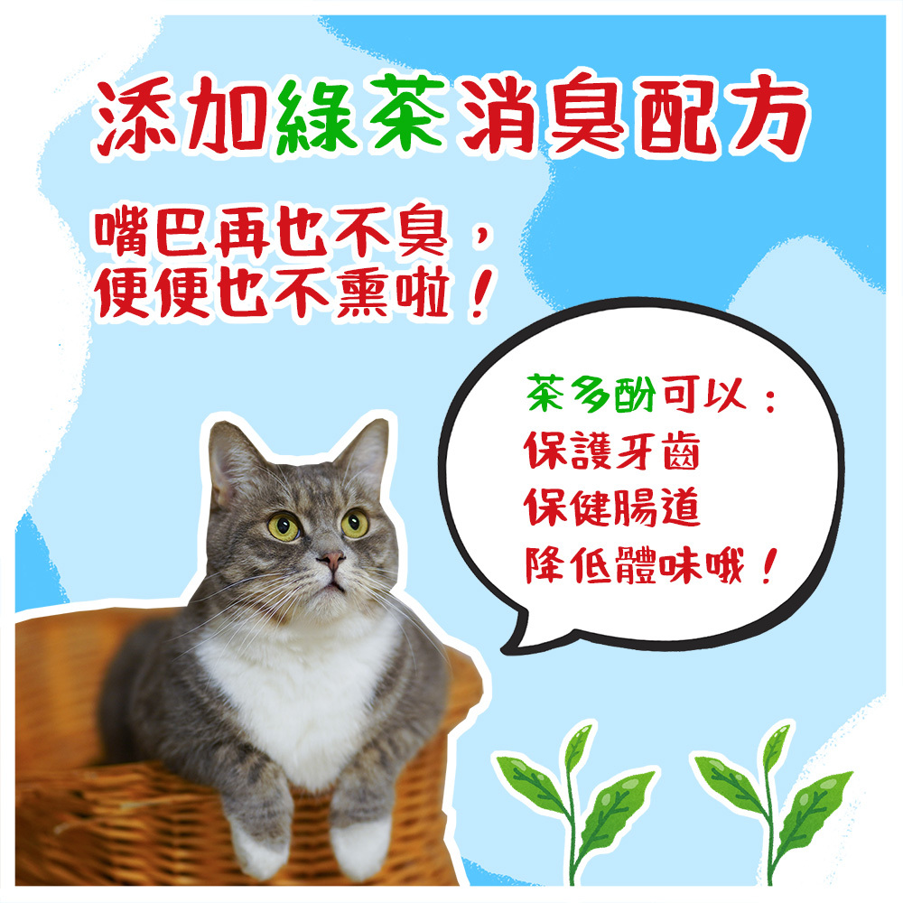 .綠茶消臭成份,針對貓咪便便的臭味