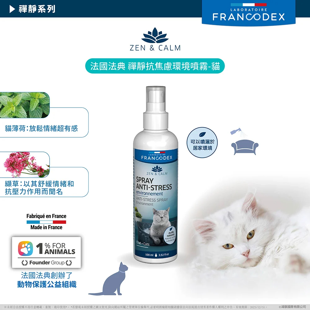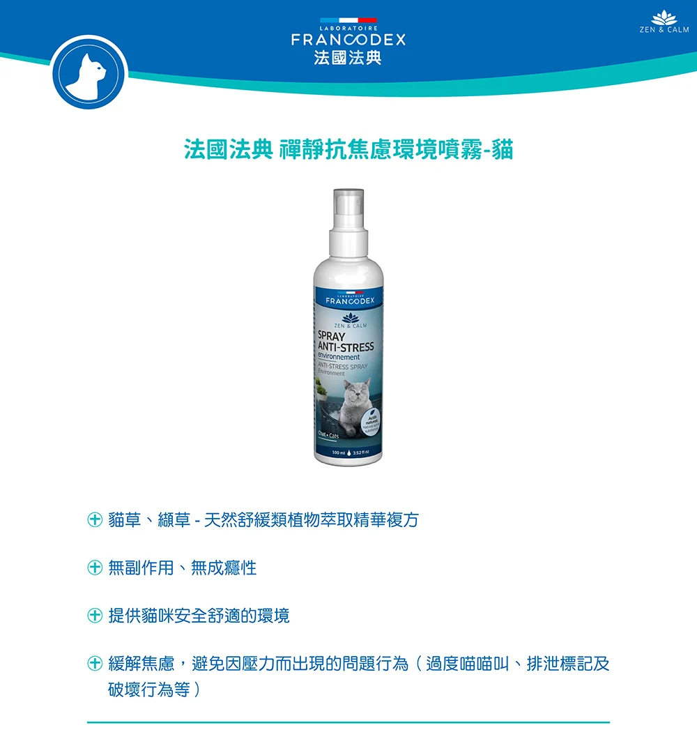 .緩解焦慮,避免因壓力而出現的問題行為(過度喵喵叫、排泄標記及破壞行為等)