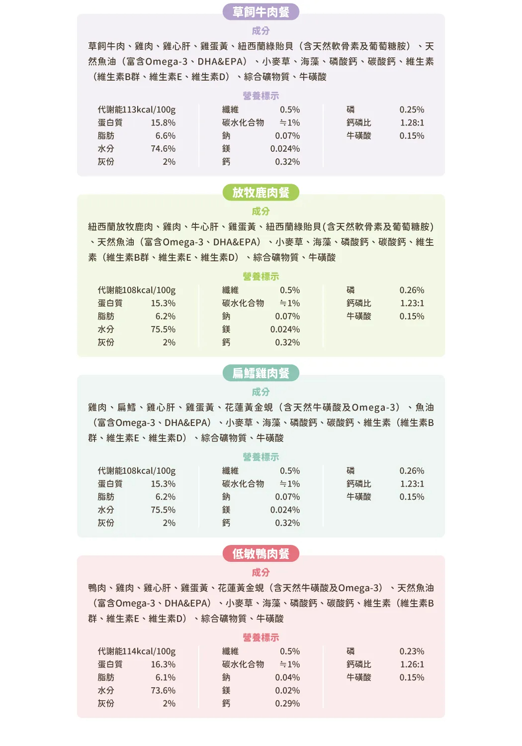 • 98% 鮮肉及內臟+2% 植物與必需營養素