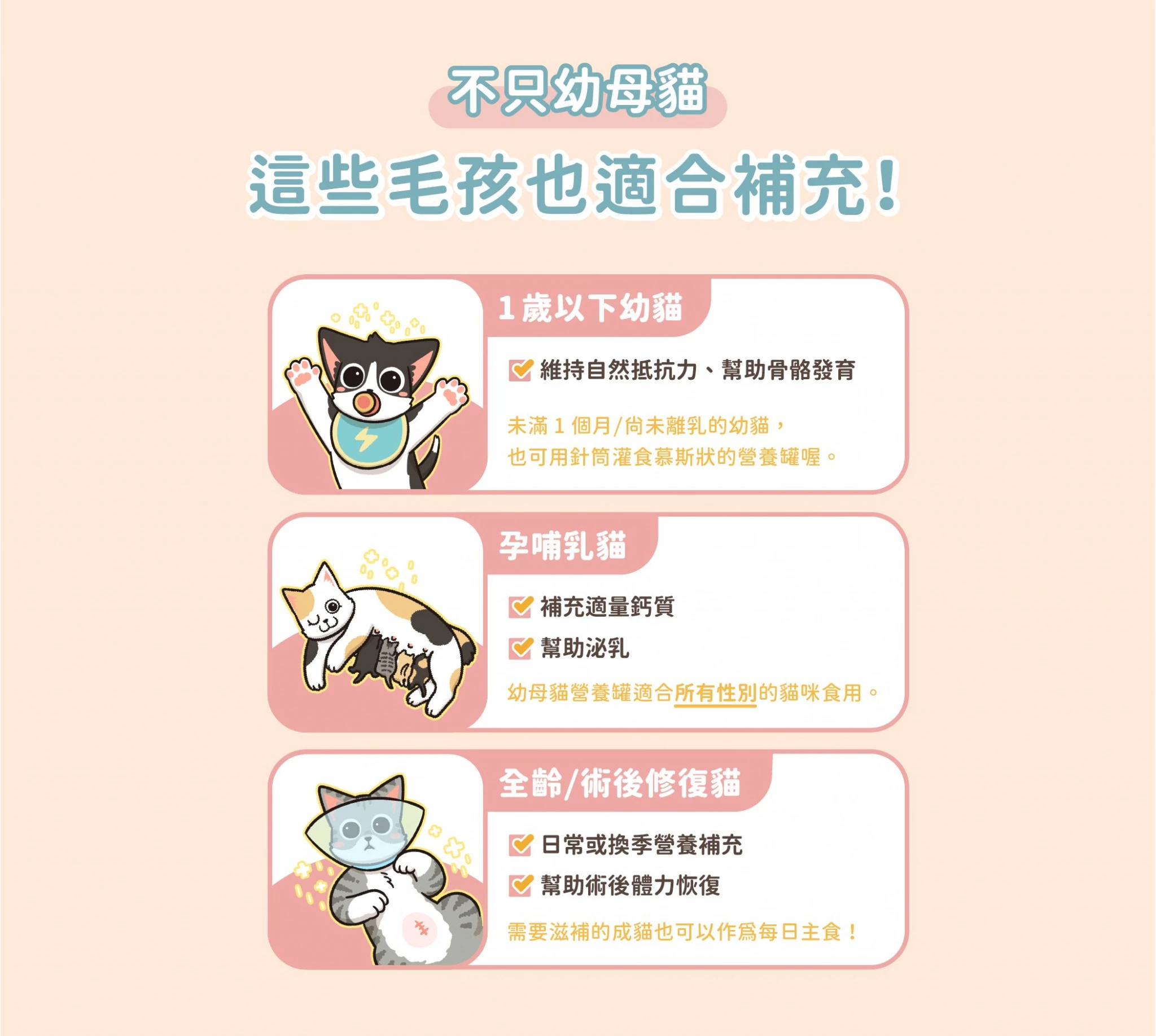 幼貓、哺乳孕貓、術後貓作營養補充