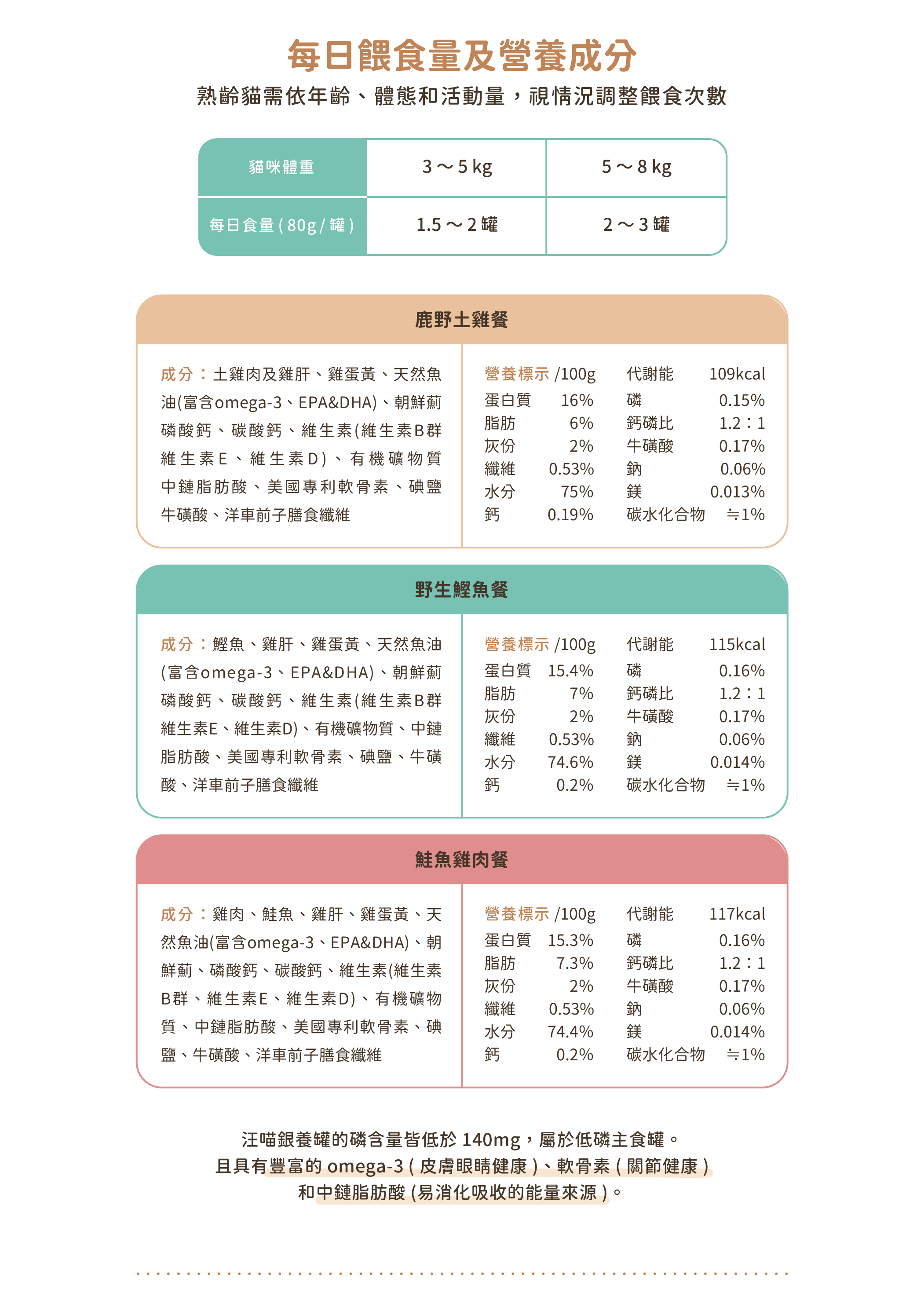 • 專屬營養設計,關節、腦部及心血管營養補充