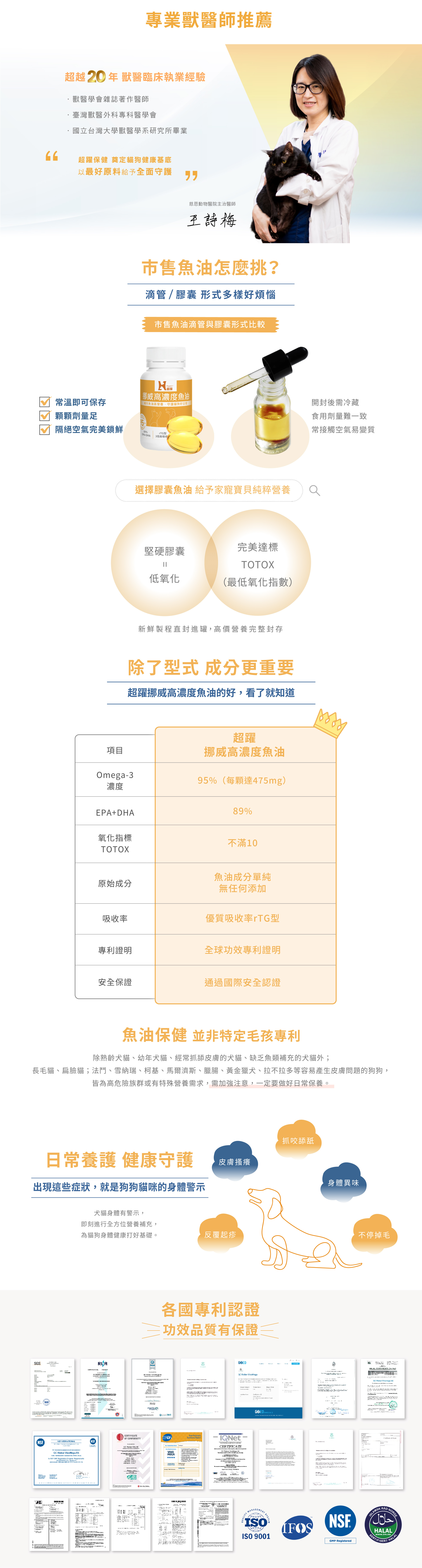 公開透明標示,每顆皆萃取自挪威純淨海域深海小型魚,絕無添加雜油充數!而是狗貓維持健康的好油!
