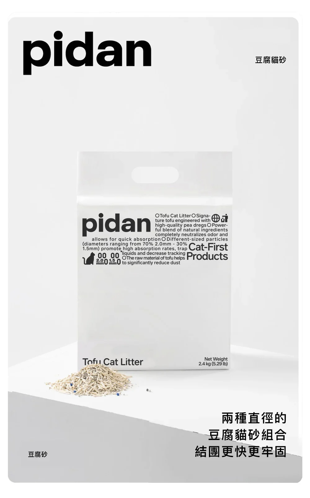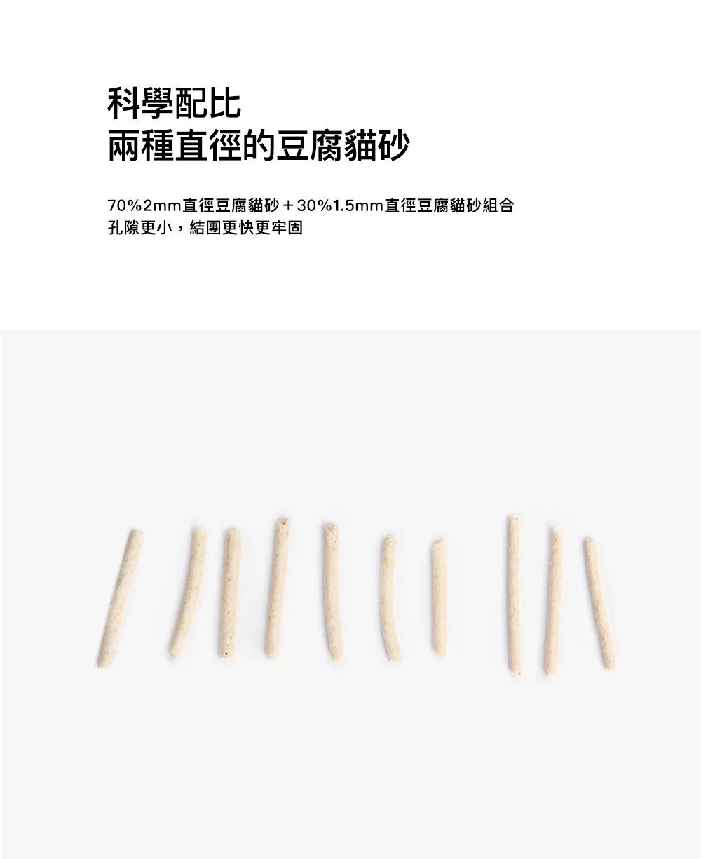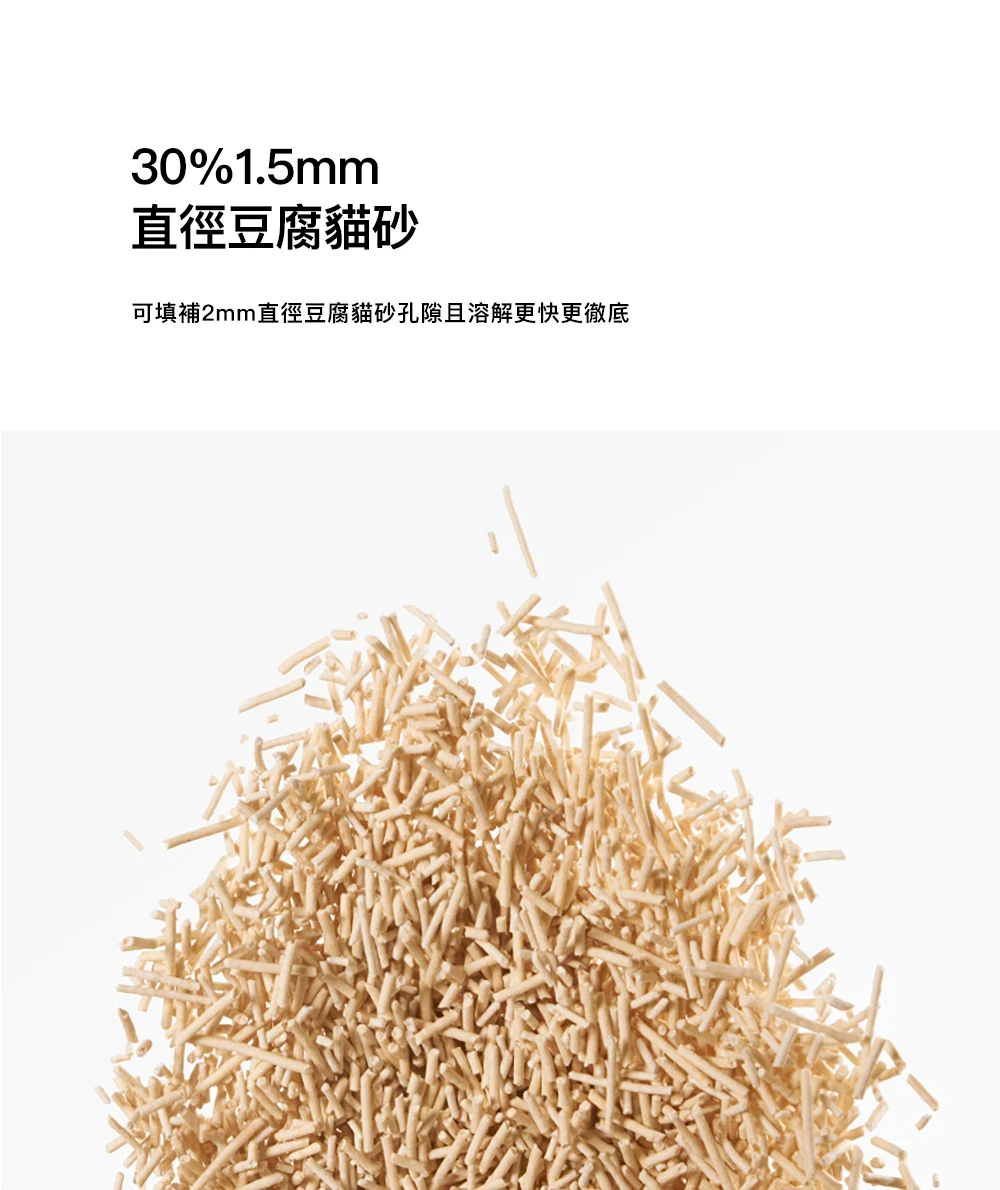 ● 70%2mm直徑豆腐貓砂+30%1.5mm直徑豆腐貓砂組合