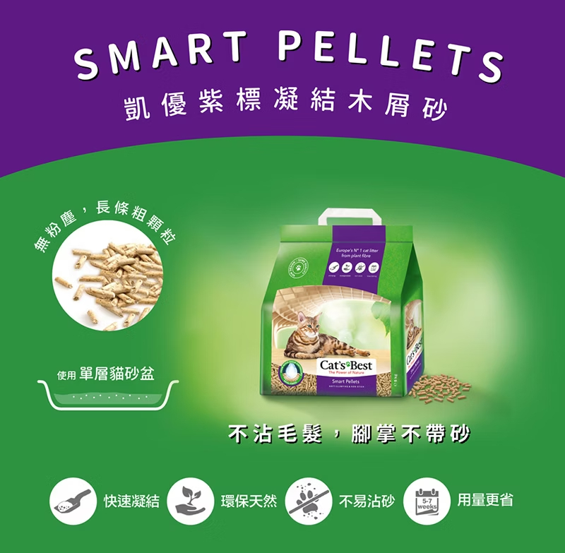 紫標迷你POWER顆粒比一般木屑砂沉重,因此不會黏附在毛髮上