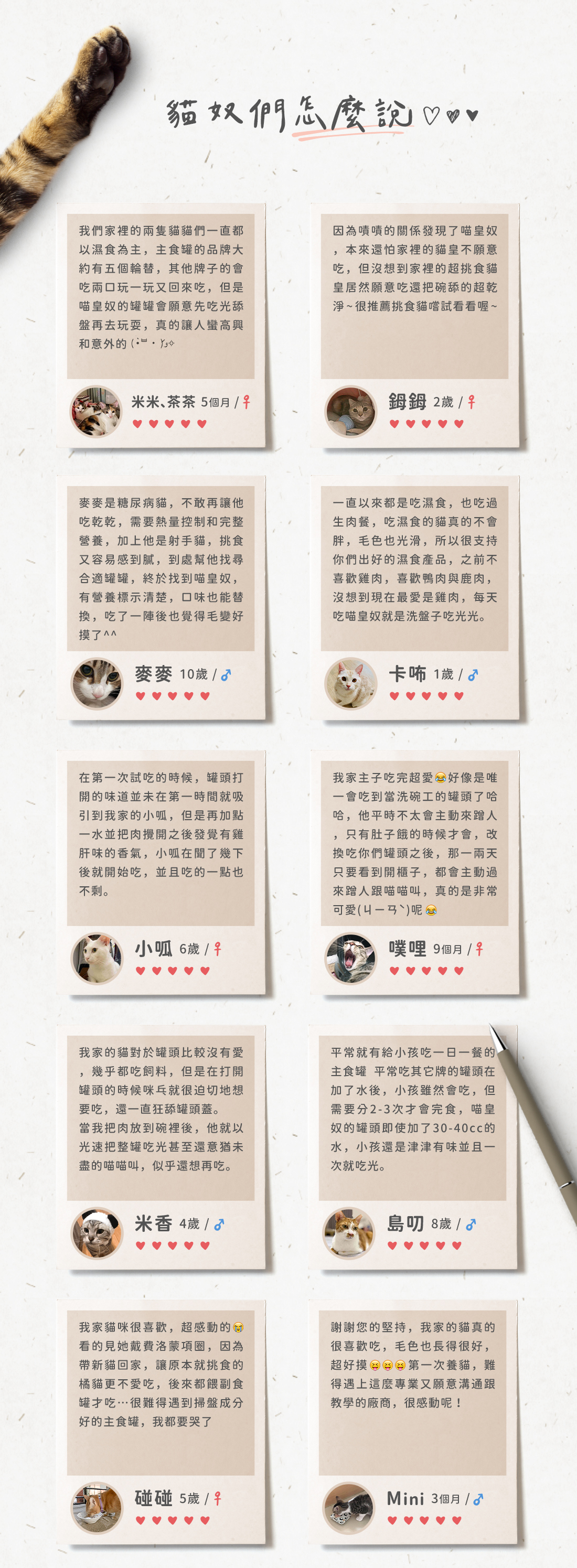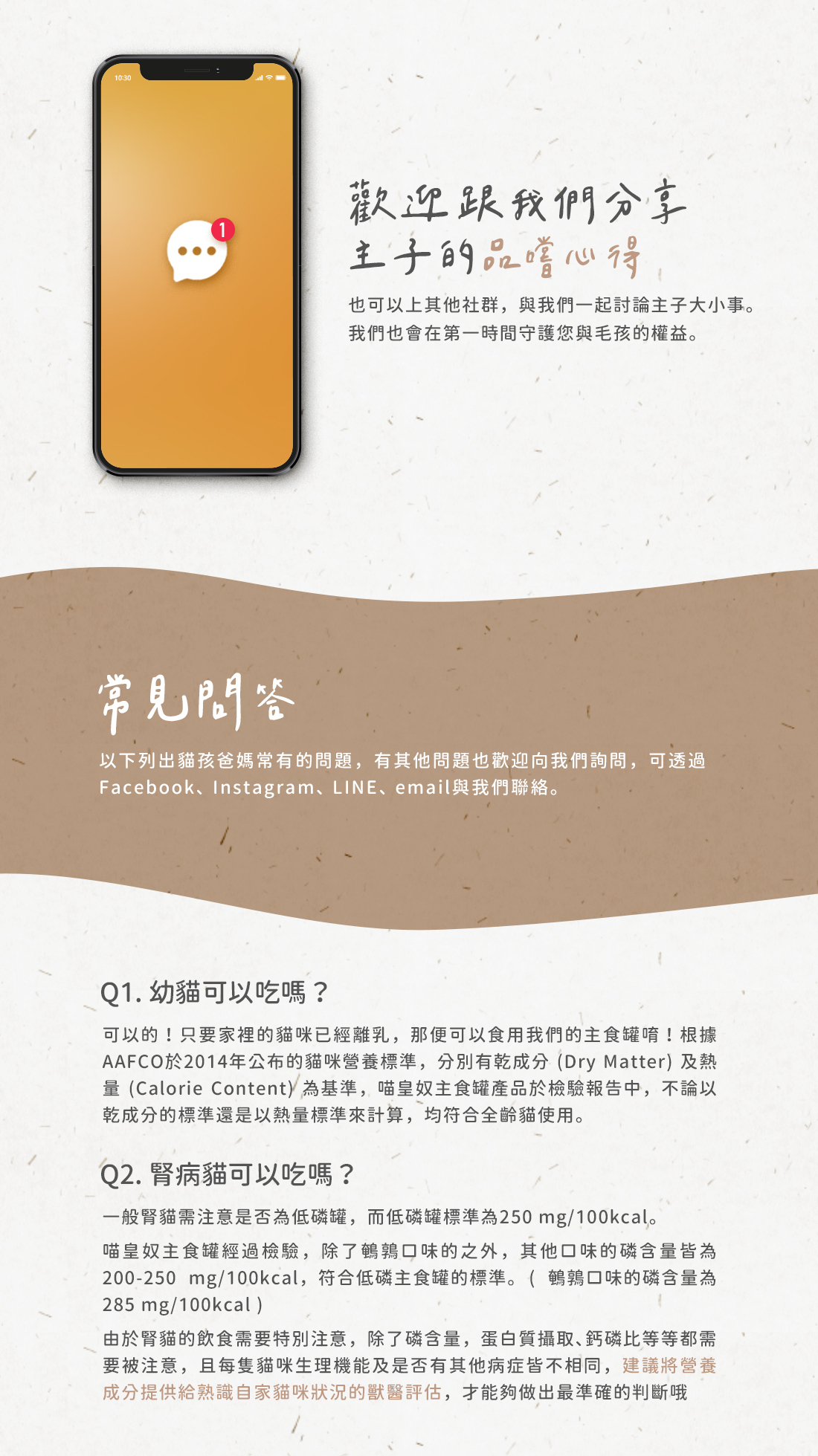 ・黃金比例主食,首創20項營養檢驗,並逐一比對並符合國際全齡貓主食標準。